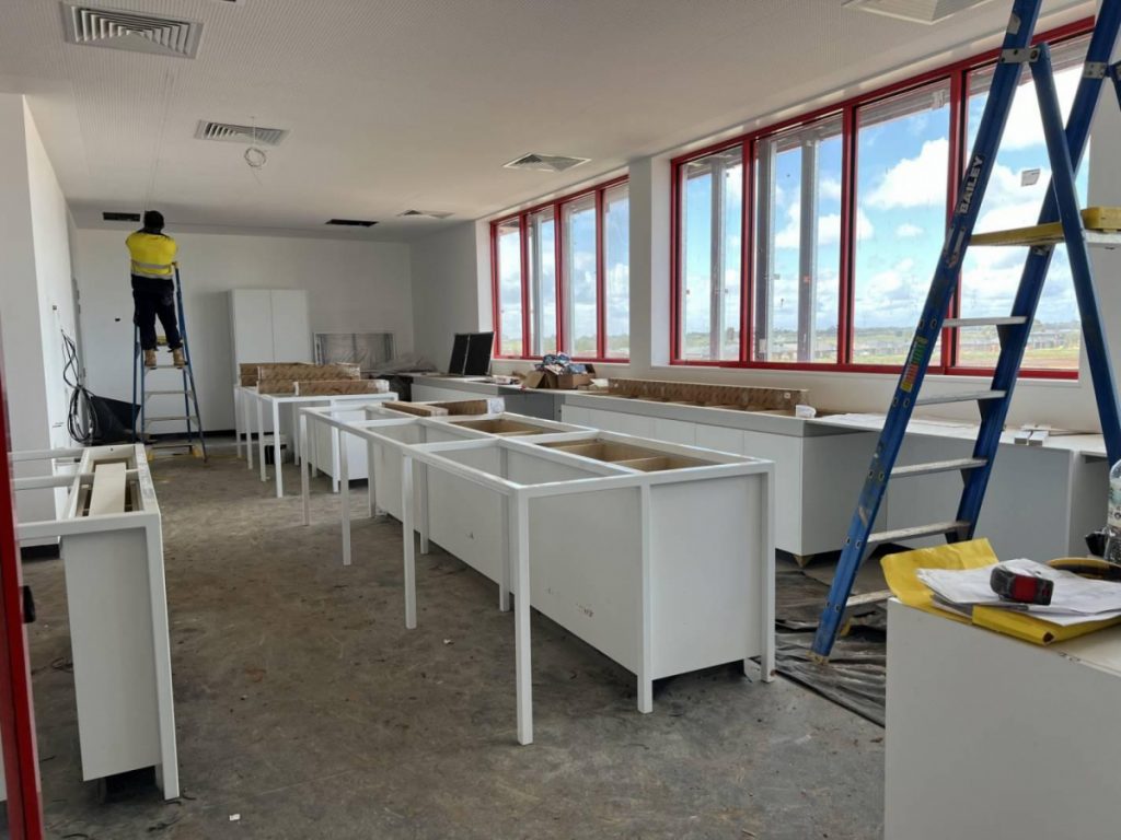 Flooring is being laid, storage built, and learning spaces fitted out while work also begins to shape the landscaped cloister in the centre of our new Cobblebank Campus. Surrounded by buildings and pathways, the cloister will provide a place for students and staff to meet, talk, learn and gather. The construction of new netball and basketball courts is also underway.